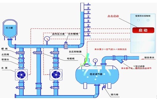 因此,在領域中“無負壓”是指利用科學的技術和措施,消除水泵運行時對其直接串接的供水管網的影響,不使其供水管網產生負壓,不影響附近用戶的用水,不污染水質,從而保護了與供水管網直接串接的供水安全和水質衛生。