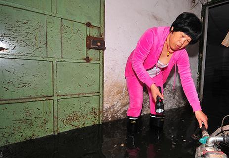 昨天上午,記者來到開南小區4號樓5單元,剛一走進單元門,一股刺鼻的氣味迎面撲來,只見居民趙女士和鄰居正在用水泵將地下室的污水往外抽。記者借助手電筒的亮光向下看,只見地下室成了一片“汪洋”,水面上漂浮著塑料袋等垃圾,有些沒來得及搬出來的物品也泡在水里。記者簡單測了一下,地下室出口處的水有四五十厘米深。“出口的地方我們把地面加高過,里面的水才深呢。”趙女士說,為了防止出現意外,二樓居民蘆先生自己購買了一臺水泵,他們輪流每天將地下室的水往外抽,但效果仍然不佳。