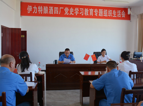 7月23日下午,伊力特釀酒四廠黨支部召開黨史學習教育專題組織生活會,師市黨史學習教育第七巡回指導組組員趙曉慶、王孟煜及伊力特公司黨群工作部部長朱綠琴、宣傳干事劉小芳到