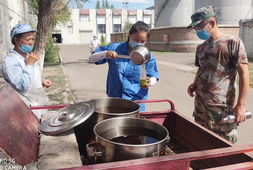 8月5日下午,伊力特釀酒四廠“黨員先鋒突擊隊”物資供應(yīng)保障小組成員,在組長王剛的帶領(lǐng)下,正挨著給全廠各車間、部位一線員工及住宅區(qū)居民送政府免費供應(yīng)的中藥湯劑。