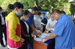 6月16日,伊力特股份公司釀酒一廠大門口,員工圍聚在咨詢臺前,聆聽安全員黃宗貴講解安全知識和法規(guī)等。