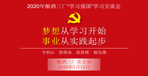 “積土而為山,積水而為海。”自2019年,公司全力推廣使用“學習強國”學習平臺以來,“學習強國”如同一縷和煦的春風吹進釀酒三廠,在這一年內(nèi),不僅催生綻放出了絢麗的花朵,還滿足了本廠廣大黨員干部和職工群眾多樣化、智能化、便捷化的學習需求。為貫徹落實公司黨委關于在疫情防控特殊階段科學合理的開展黨內(nèi)組織活動的決策部署,該廠黨支部借取這股春風,于2020年5月15日下午16點整,在電教室部署開展了“學習強國”APP答題挑戰(zhàn)賽主題黨日活動,推動習近平新時代中國特色社會主義思想往深里走、往實里走、往心里走。
